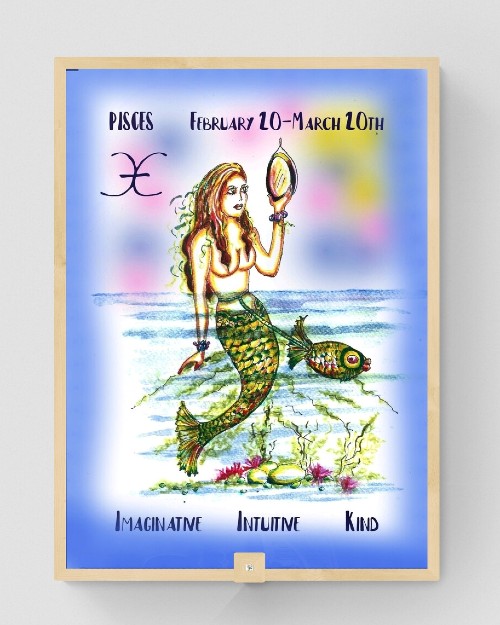 Pisces the Fishes astrological birthday print-portrait edition-A4 size prints.